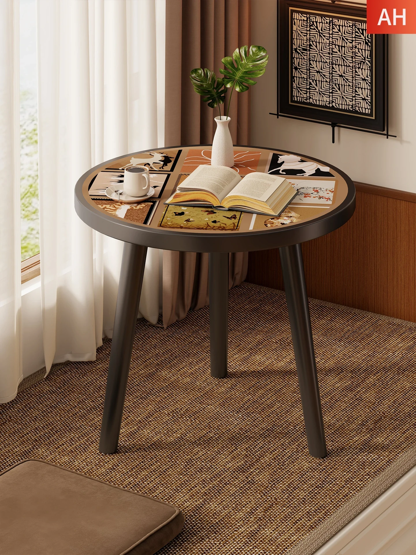 窓辺にぴったり!コンパクトな円形ローテーブル - 和室やバルコニーに最適な小さな茶卓。リラックスした時間を演出する、居心地の良い空間作りをサポートします。