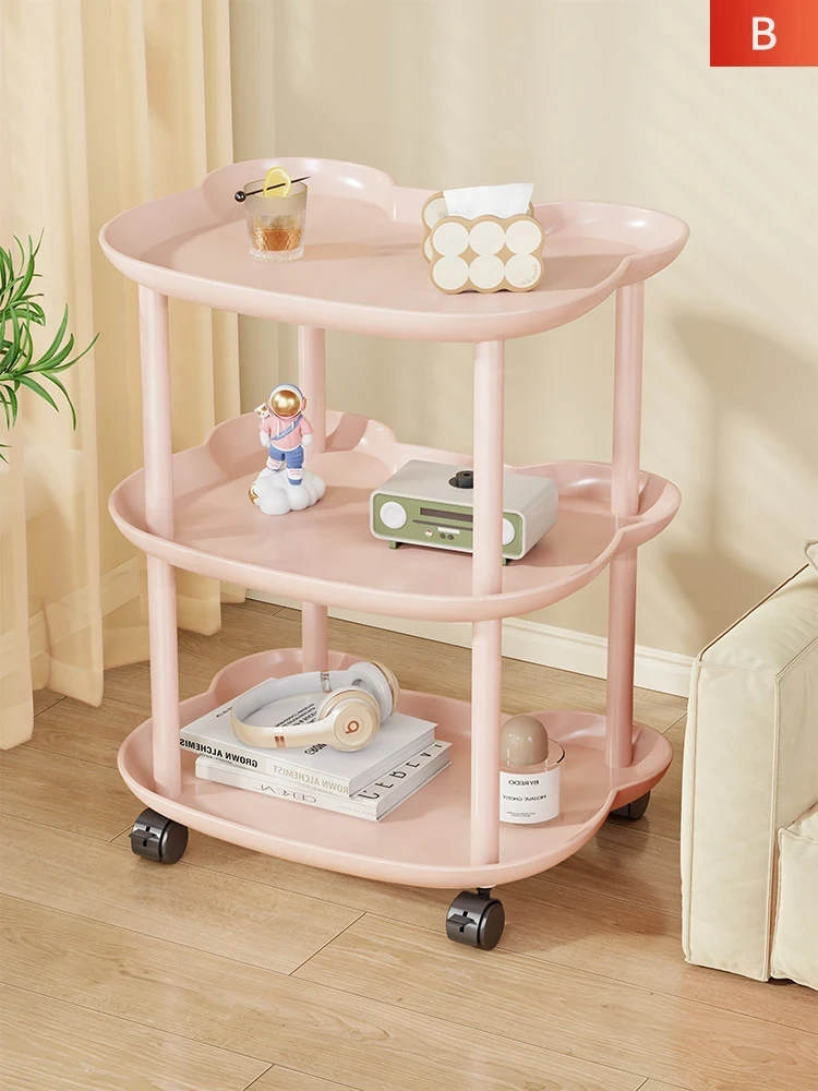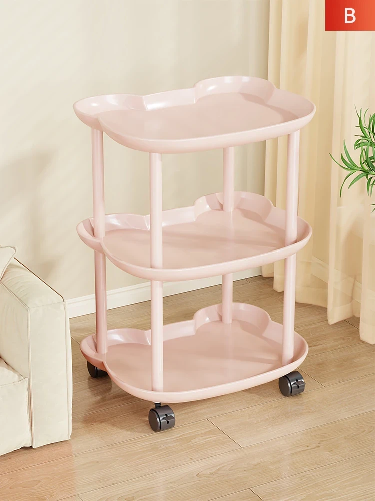 北欧風 キャスター付きミニサイドテーブル 移動可能な小型収納ラック クリームカラーの可愛いリビング用コーヒーテーブル 小さいお部屋にもぴったり!多層設計で便利な収納力!