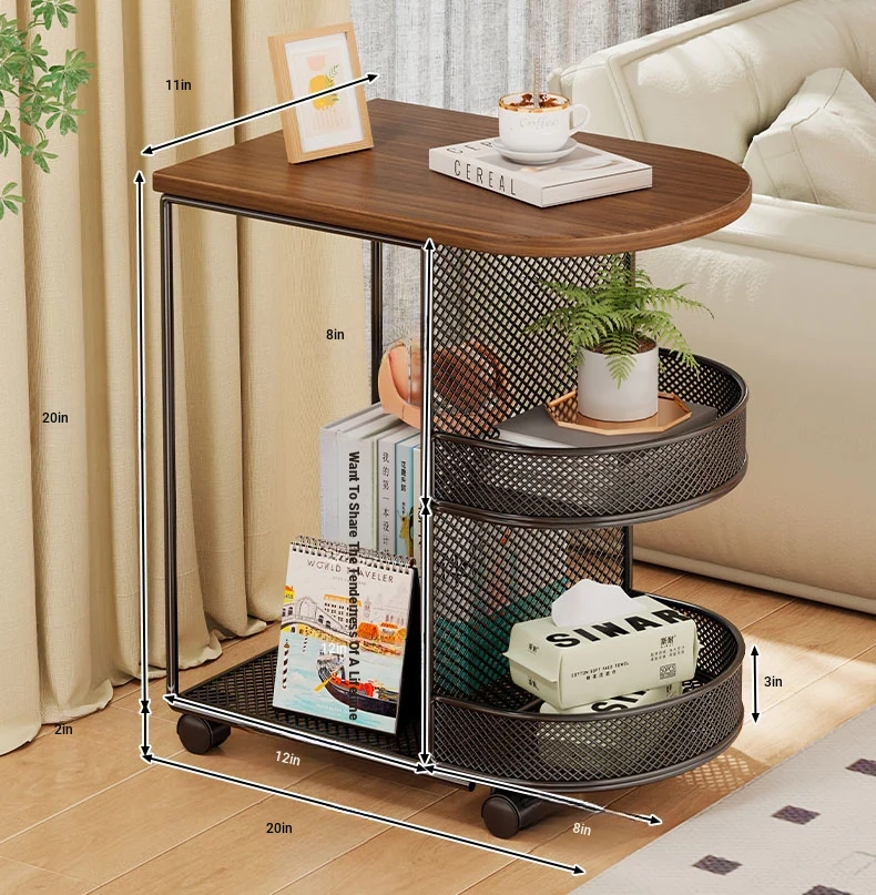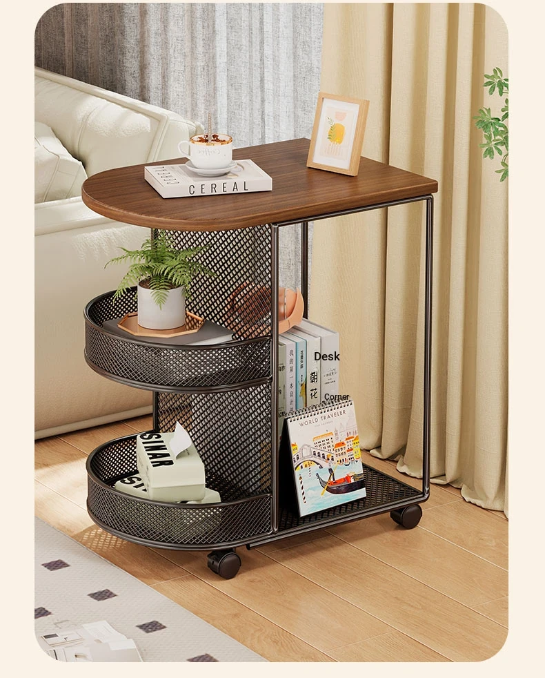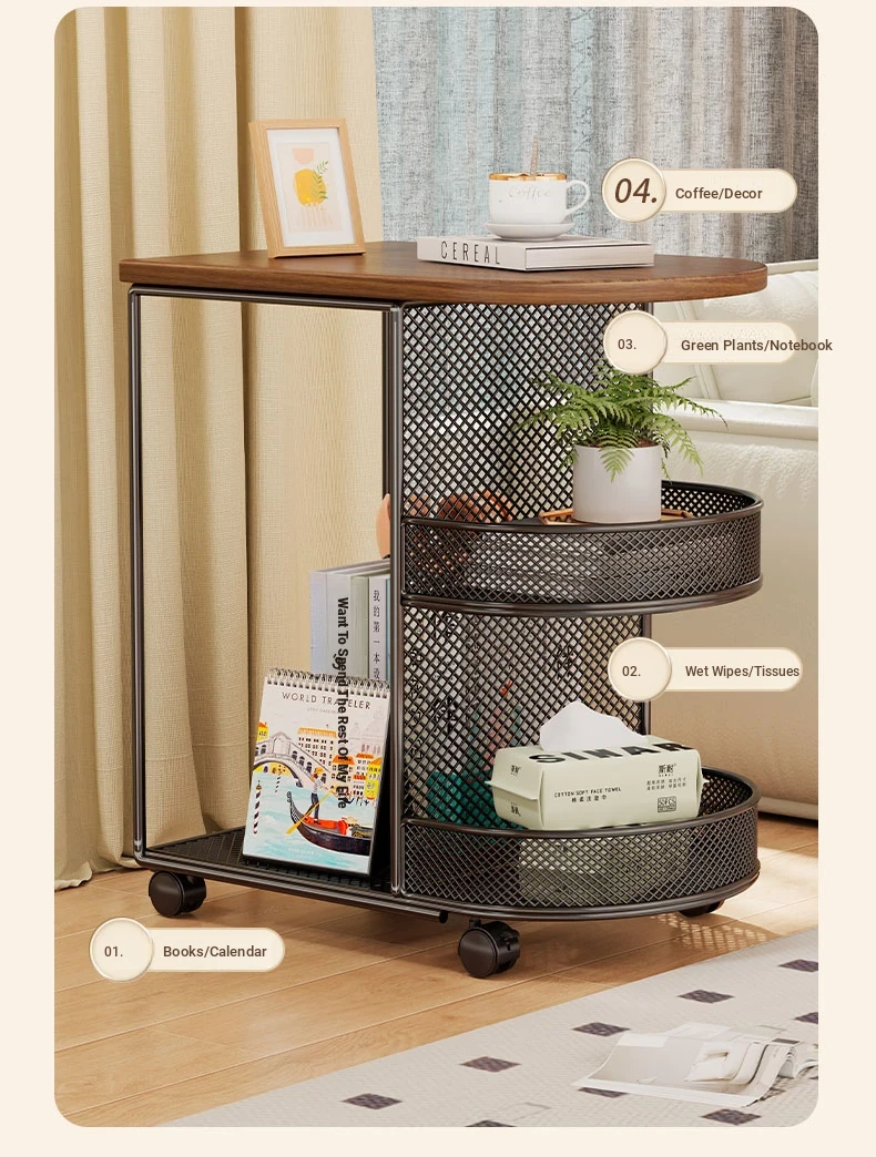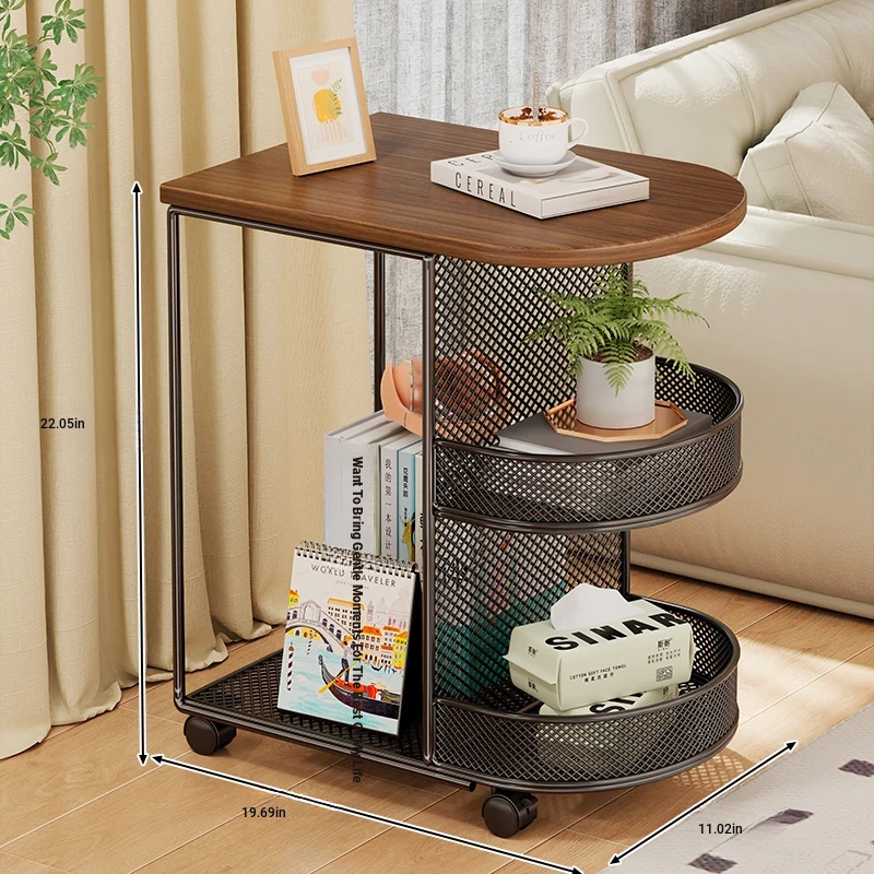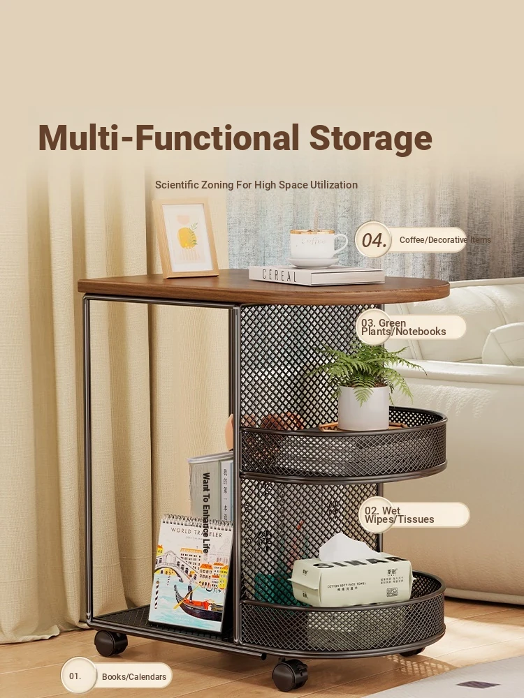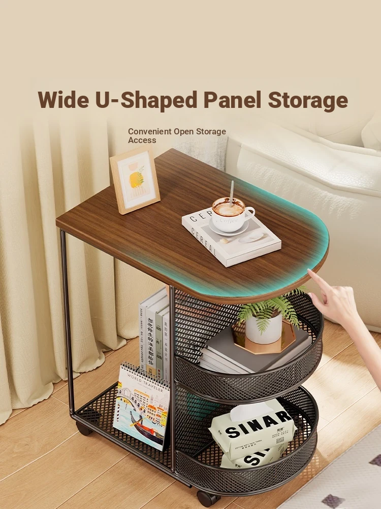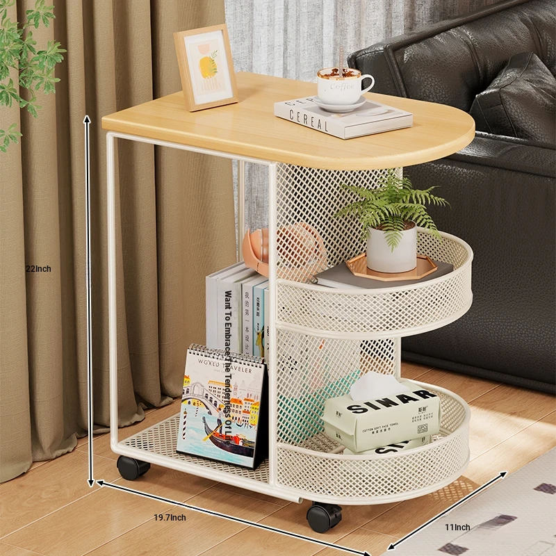 Luxury Movable Side Table with Storage - Elegant Rolling Mini Coffee Cart for Living Room, Stylish and Functional Nightstand with Wheels