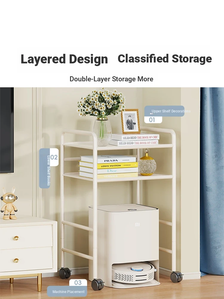 Multifunctional Side Table for Sofa - Multi-Layer Bookshelf Storage Cabinet, Ideal for Small Spaces, Robot Vacuum Organizer, Perfect for Living Room and Aquarium Stand