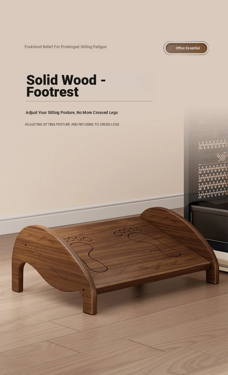 Solid Wood Footrest for Office - Ergonomic Leg Support Stool, Elevation Platform to Prevent Leg Crossing and Improve Posture, Ideal for Workstations and Comfort at Your Desk.