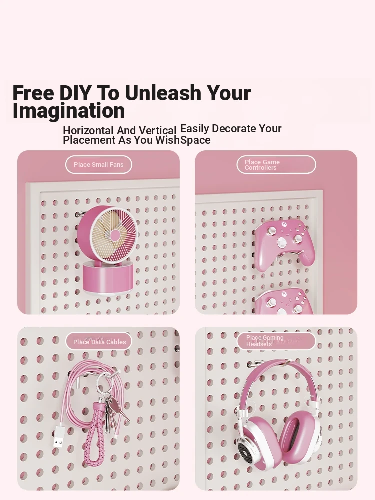 Gaming Room Pegboard Storage Rack - Wall-Mounted Metal Perforated Panel for Headphone Organization - Stylish Computer Desk Wall Shelf