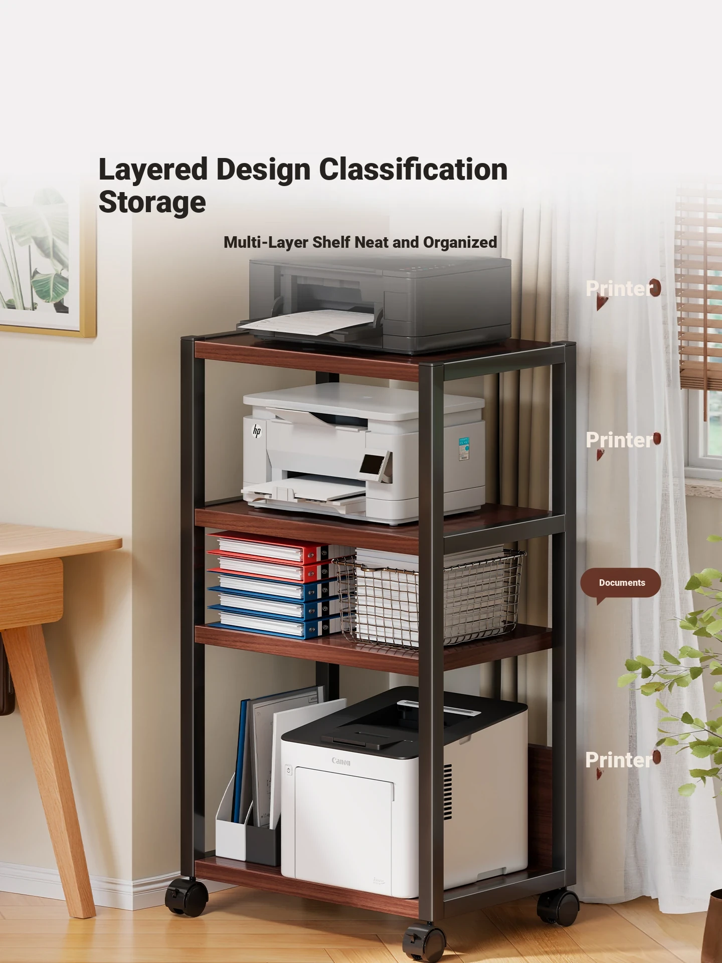 Multi-Layer Printer Stand with Wheels - Mobile Storage Rack for Office, Perfect for Printers and Copy Machines, Space-Saving Organizer for Your Workspace