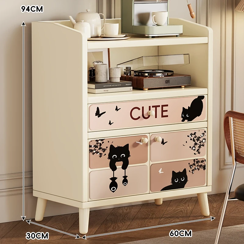 レトロかわいい猫⭐ウォームホワイト【2ドア1引き出し】