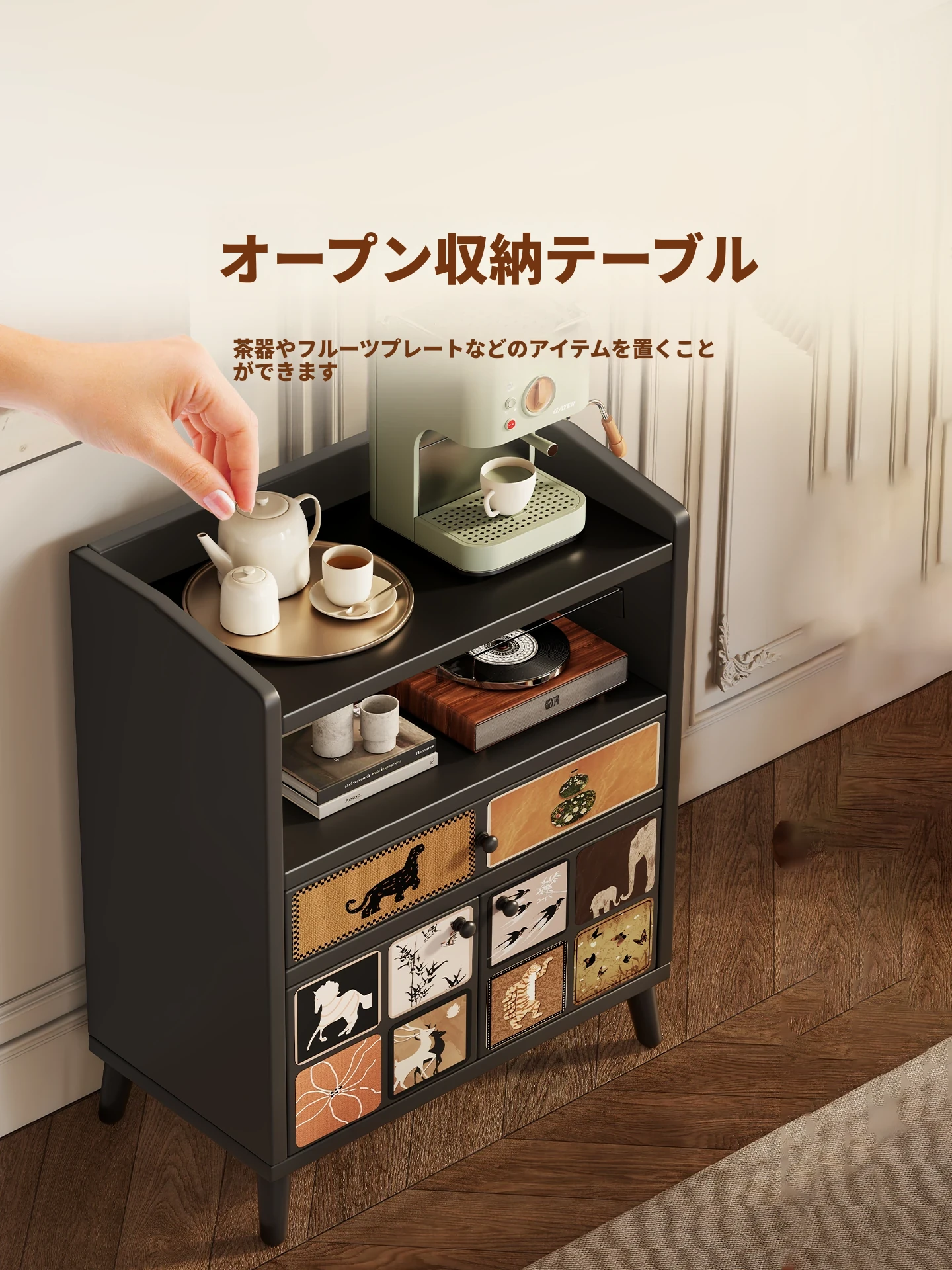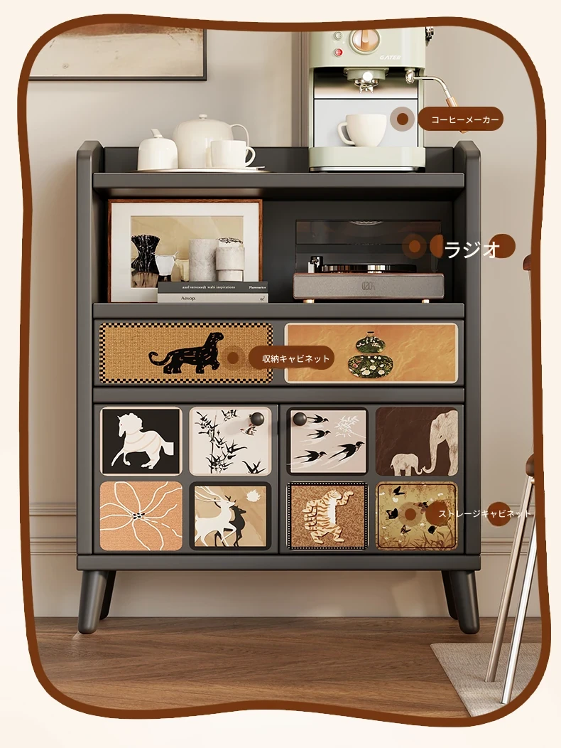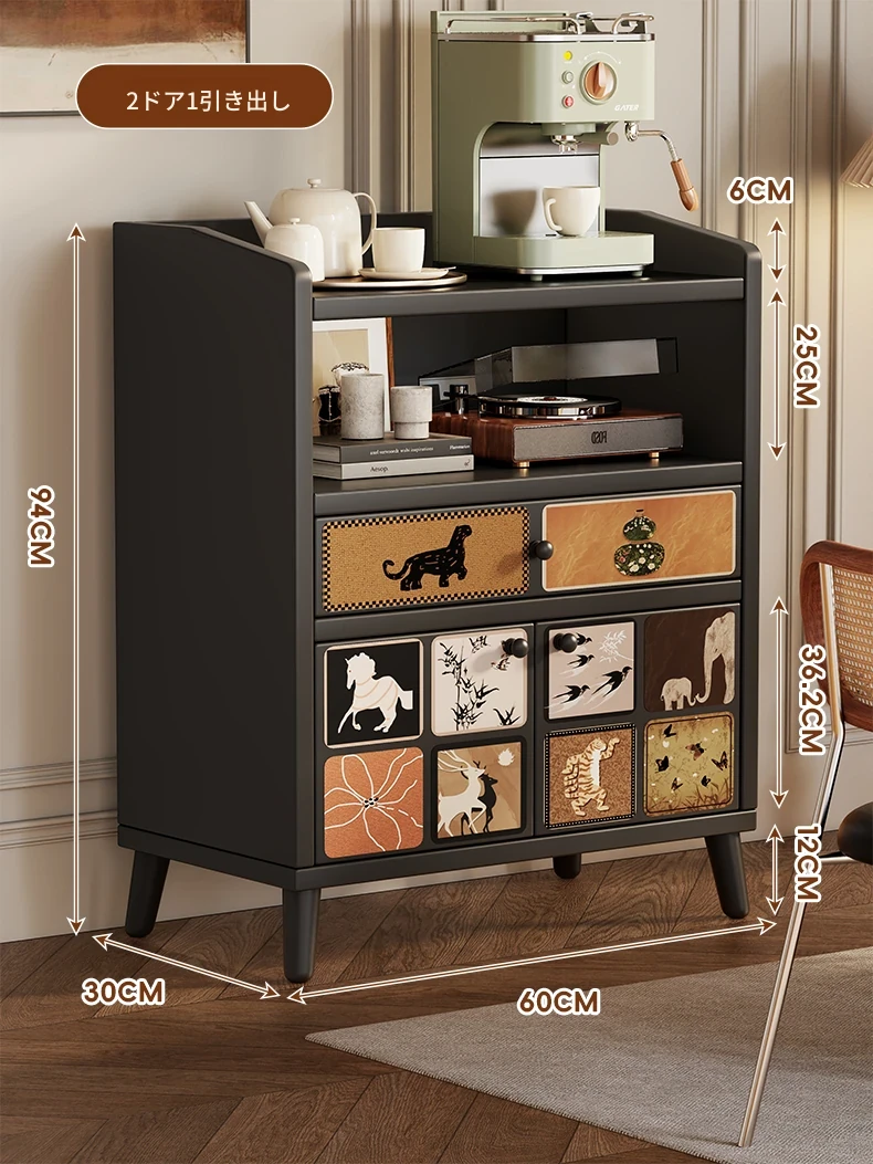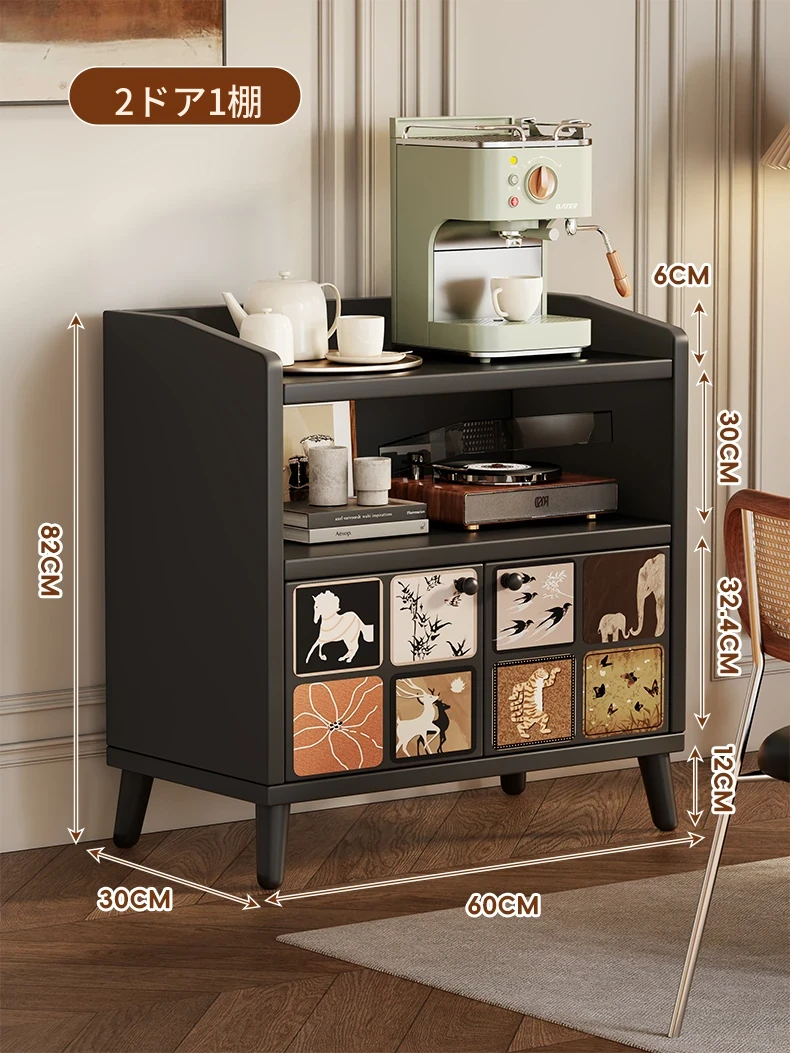 キッチン・ダイニングサイドキャビネット|壁付け一体型収納|家庭用リビングソファ横スリム収納キャビネット|ティーサーバーにも最適!おしゃれで便利な収納スペースを実現!