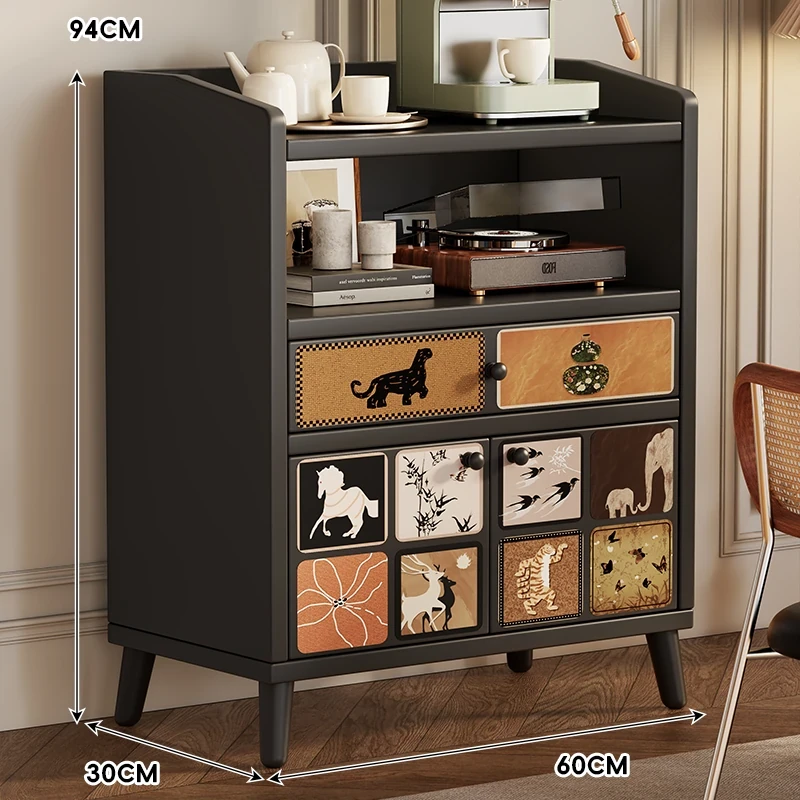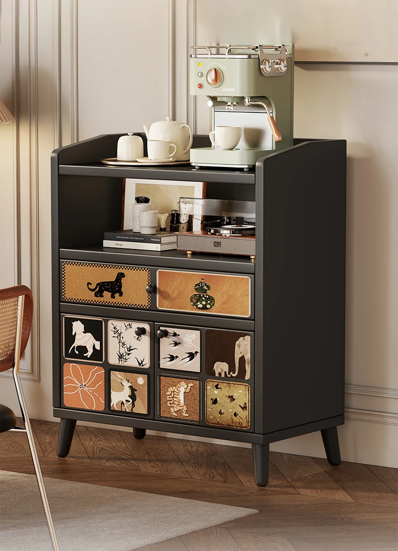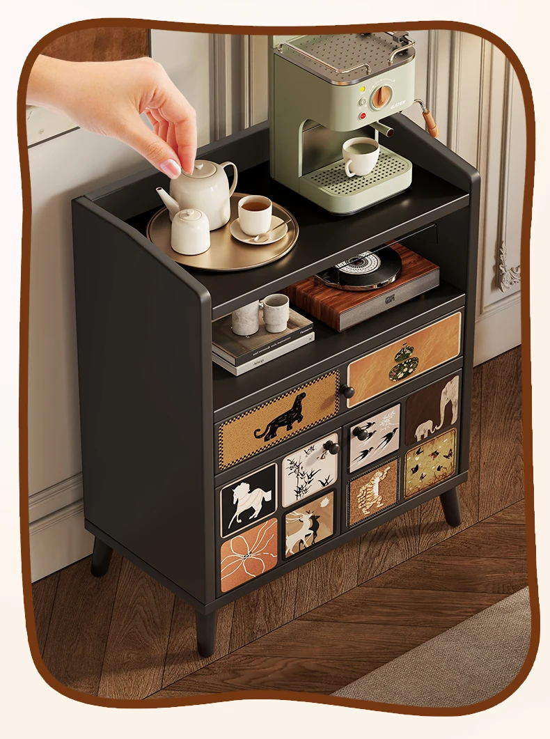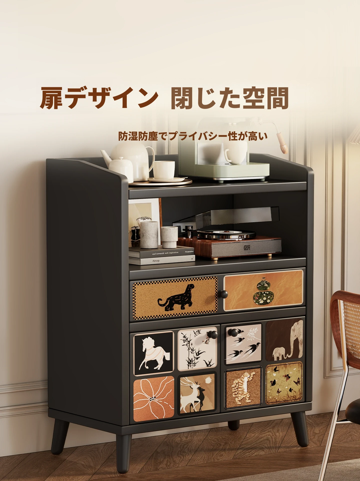 キッチン・ダイニングサイドキャビネット|壁付け一体型収納|家庭用リビングソファ横スリム収納キャビネット|ティーサーバーにも最適!おしゃれで便利な収納スペースを実現!