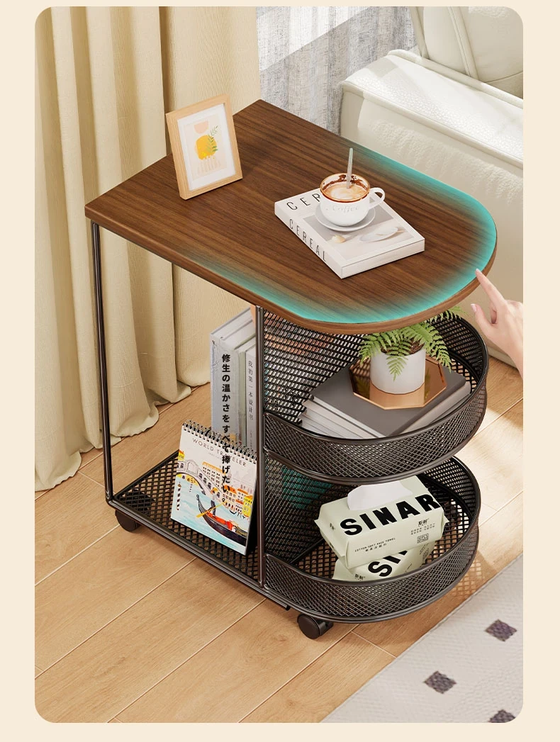 移動式収納サイドテーブル:高級感あふれるミニキャビネット、キャスター付きで便利!リビングにぴったりのスタイリッシュな小テーブル。