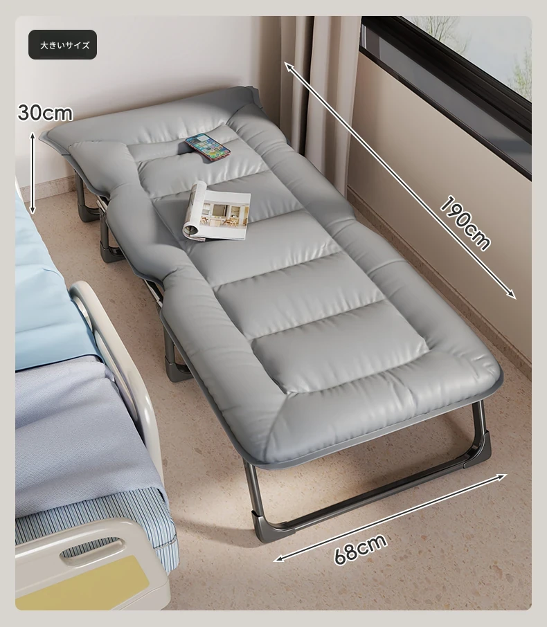 病院用の介護ベッド、オフィスでの昼寝に最適なポータブルリクライニングチェア!折りたたみ式で自宅でも使える、快適な休息を提供します。あなたのリフレッシュタイムをサポートします!