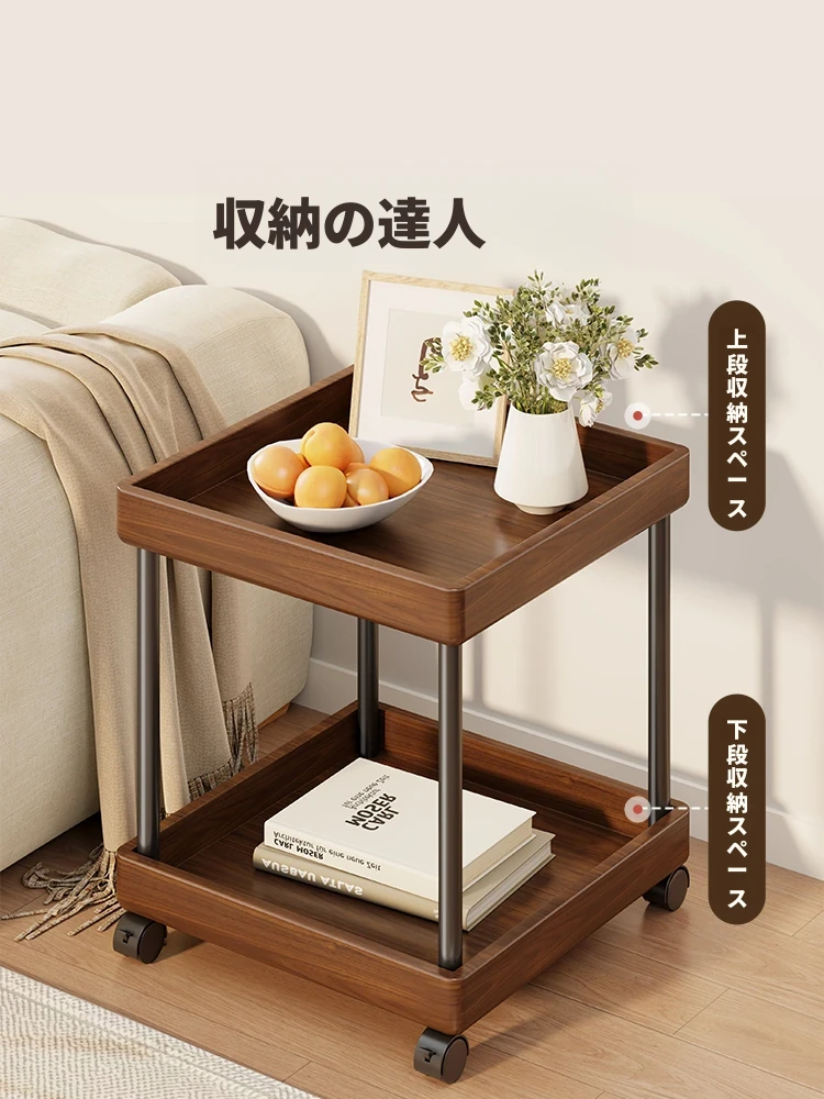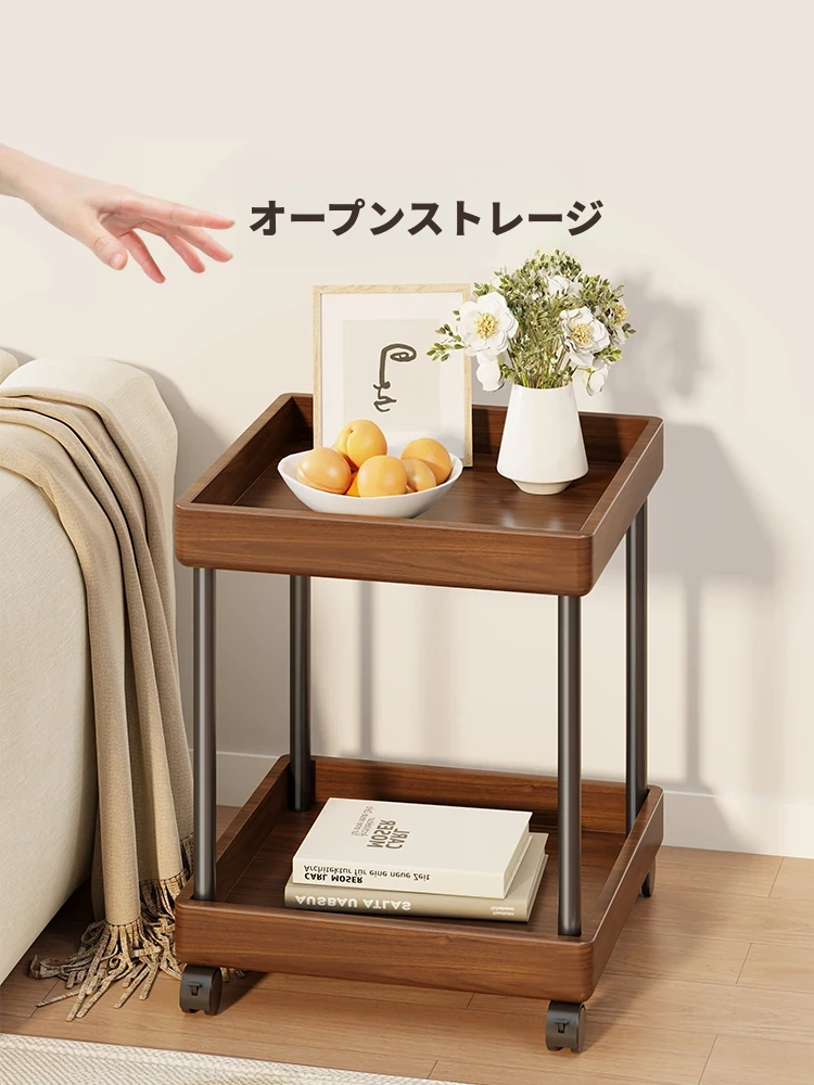 無垢材のスタイリッシュなコーヒーテーブル|ベッドサイドテーブルやソファサイドにも最適!小さな部屋にもぴったりのコンパクトデザインで、移動もラクラク。おしゃれで機能的なサイドキャビネット。