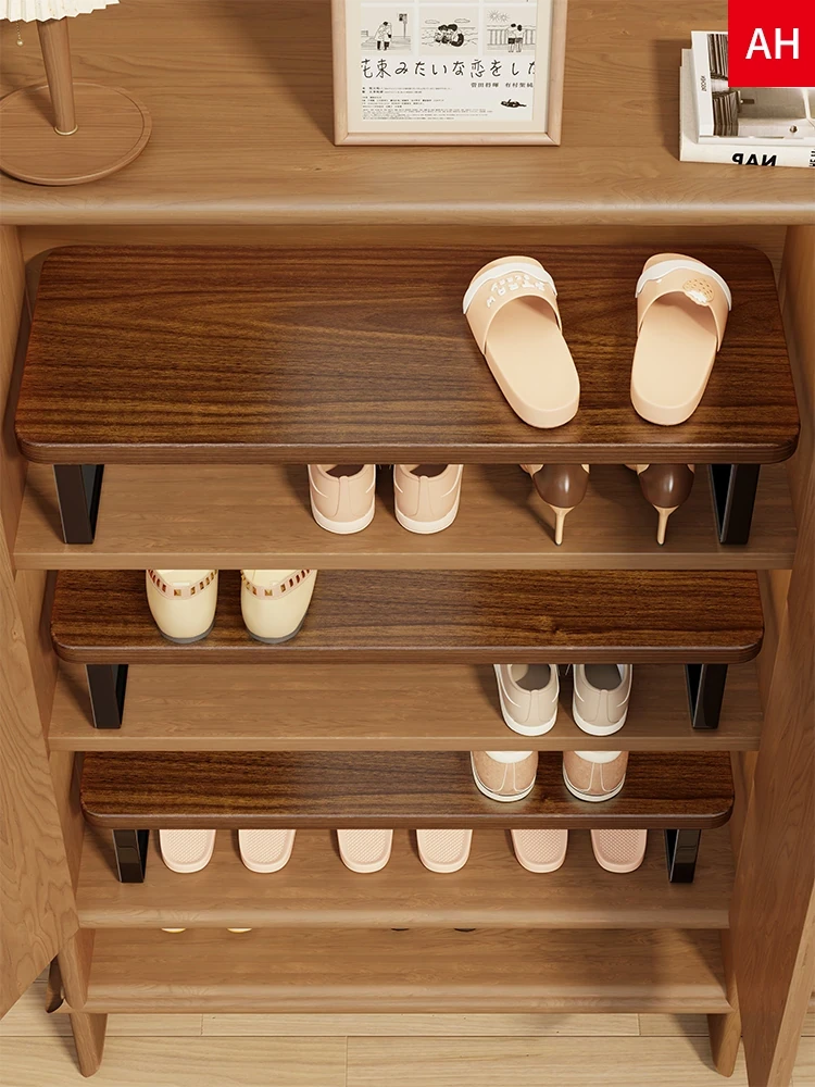 天然木製シューラック|家庭用シューズキャビネット|多層仕切り付き収納棚|靴の整理が簡単でスペースを有効活用できる!おしゃれで機能的な収納アイテム!