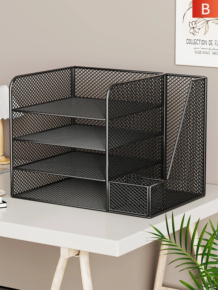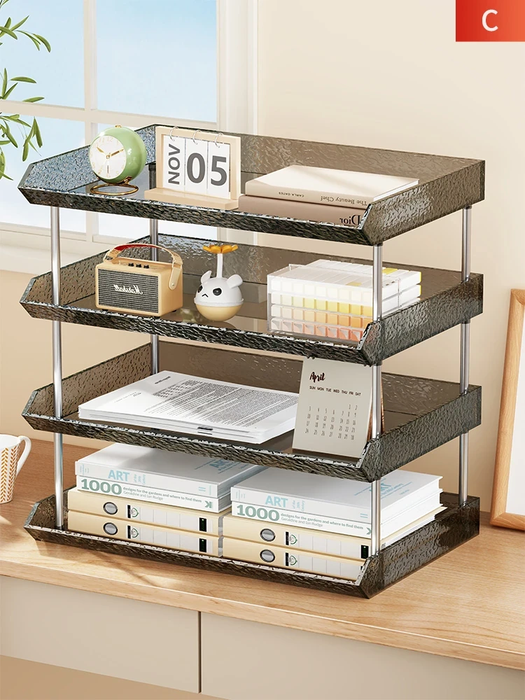 デスク上整理棚 オフィス用多層ファイル収納ラック 学生向け本収納アイアンシェルフ すっきり整理できる!おしゃれで機能的な書類・本の収納に最適!