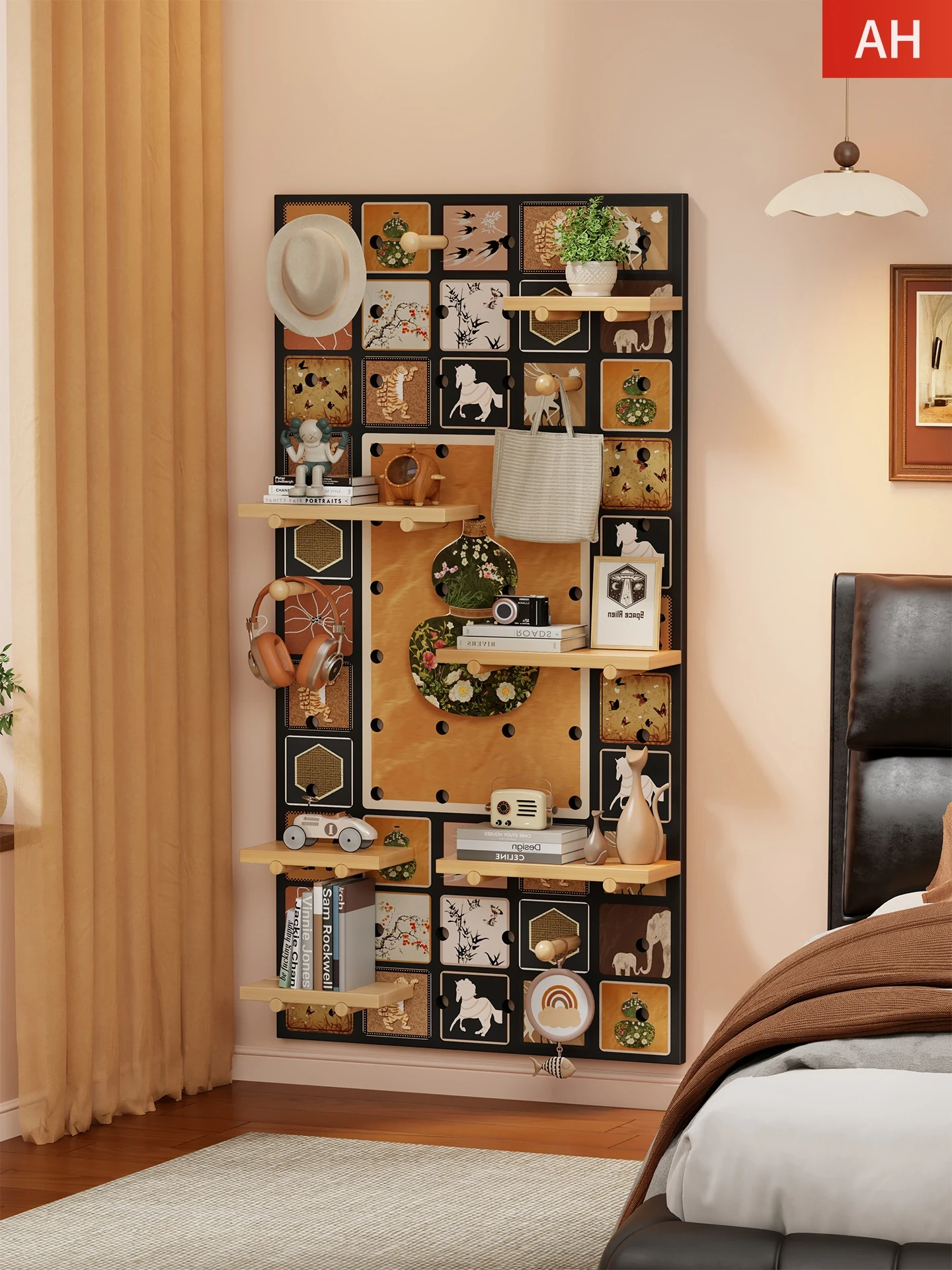 玄関スペースをスマートに演出!多機能ホールディングボード - 壁面の穴あきパネルで、リビングの収納とディスプレイが一体に。おしゃれで実用的なアイテムで、あなたの生活空間をグレードアップ!