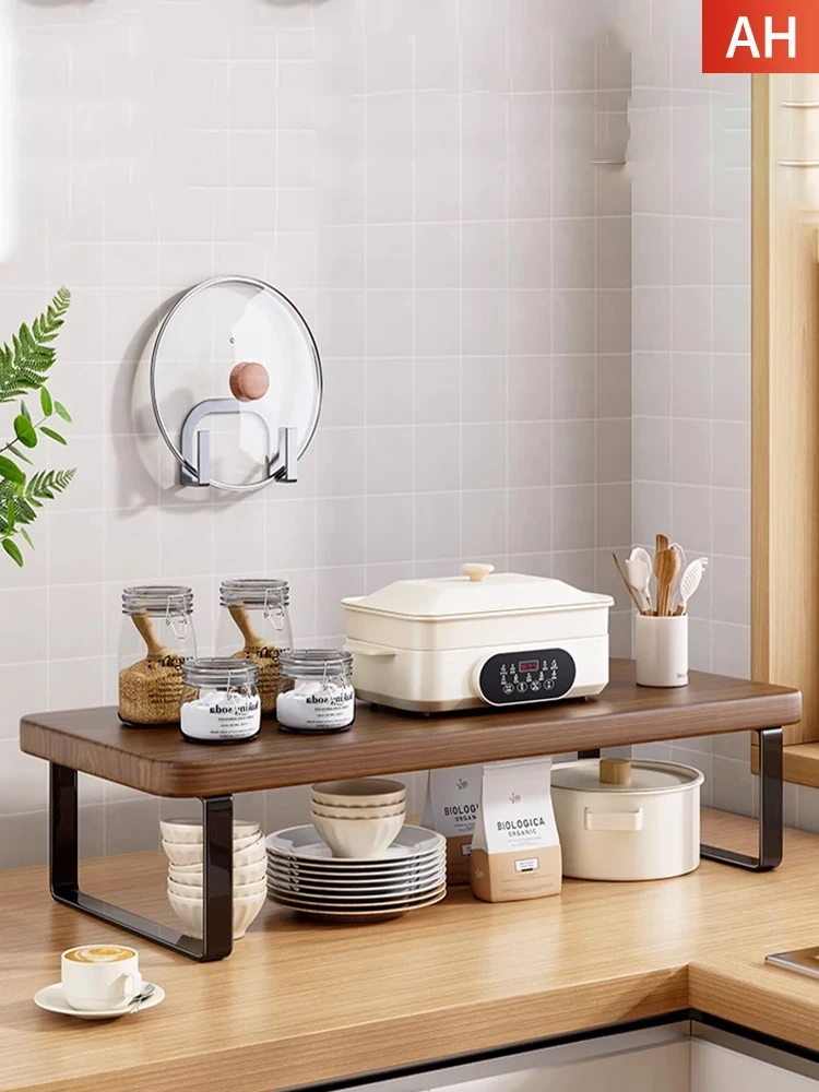 実木製のキッチン用昇降ラック - スペースを有効活用!分層設計で整理整頓も簡単。オフィスデスクや収納棚としても使える万能アイテム!あなたの生活空間を広げる魔法のような一品です!
