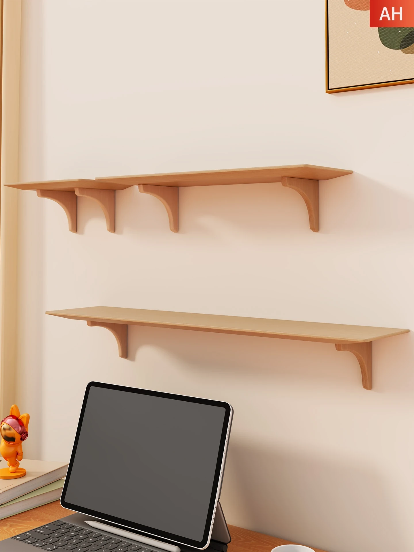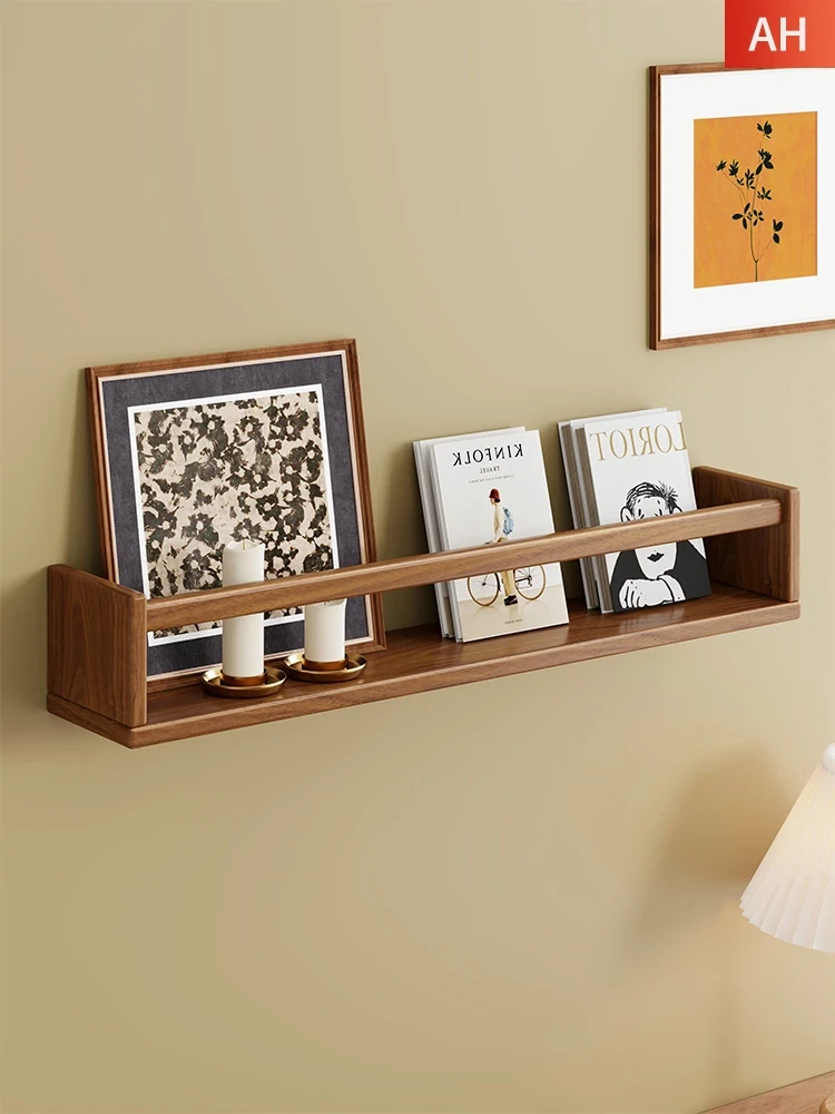 高品質な無垢材のウォールシェルフ - リビングルームに最適な書棚!一字型デザインでベッドサイドにもぴったり、壁掛けカメラスタンドとしても活用できる多機能アイテム!